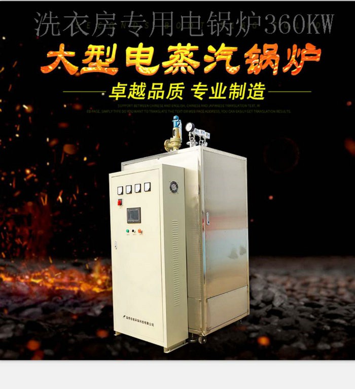賓館、醫(yī)院、洗衣廠、干洗店洗衣機(jī),烘干機(jī),燙平機(jī)需用蒸汽烘干熨燙,燙平機(jī)3滾3300型需選用LDR0.5-0.7型電加熱蒸汽發(fā)生器(電加熱蒸汽鍋爐),功率360KW,電壓540A,尺寸1300*1300*2400,